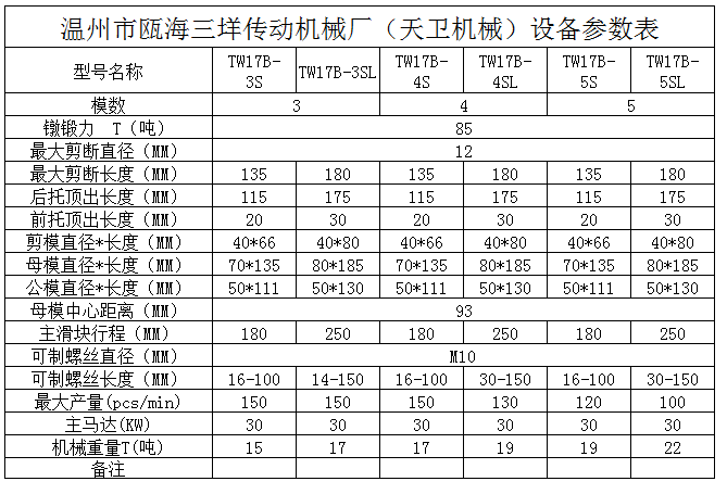 您當(dāng)前的位置:首頁(yè) / 產(chǎn)品中心 / 三模三沖冷鐓機(jī) / └ TW17B(M10)多工位冷鐓機(jī) / TW17B三模三沖多工位冷鐓機(jī)