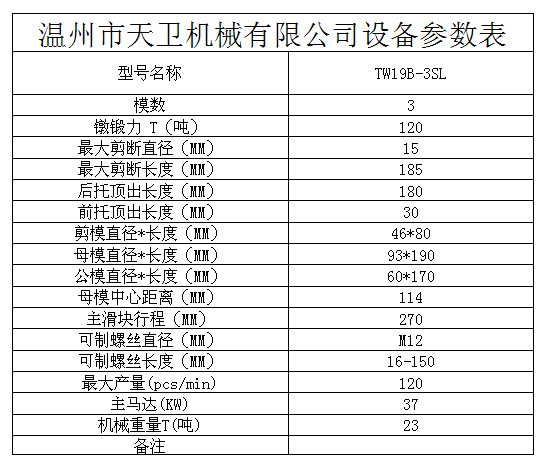 您當(dāng)前的位置:首頁 / 產(chǎn)品中心 / 三模三沖冷鐓機(jī) / └ TW19B(M12)多工位冷鐓機(jī) / TW19B-3SL全自動(dòng)多工位冷鐓機(jī)